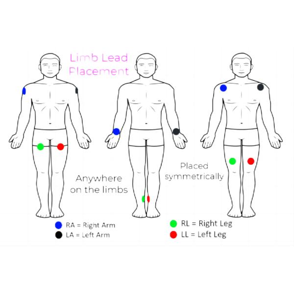 A 12-lead electrocardiogram uses 10 electrodes. Four (4) of these electrodes are placed on the limbs